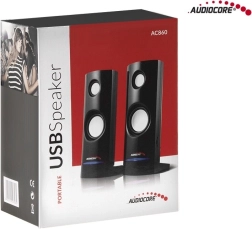 A kompakt Audiocore AC860 sztereó hangszórók tiszta, természetes hangzást biztosítanak laptopokhoz és asztali számítógépekhez. A USB-táplálásnak és a 3,5 mm-es jack csatlakozásnak köszönhetően a beállítás gyerekjáték. Az elegáns, tartós kivitel jól mutat bármelyik íróasztalon, az oldalsó hangerőszabályzó pedig kényelmes kezelést nyújt.