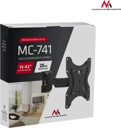 Univerzális, csuklós Maclean fali konzol 13–42 képátlójú TV-khez és monitorokhoz, legfeljebb 25 kg teherbírással, VESA 75×75-től 200×200-ig, valamint 59–228 mm között állítható faltávolsággal. A masszív fémkialakításnak és a teljes szerelőkészletnek köszönhetően ideális választás a biztonságos és rugalmas képernyő-rögzítéshez.