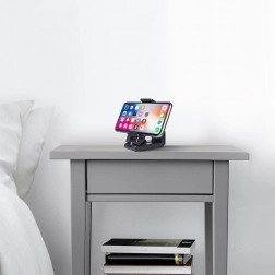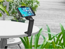 Kompakt és hordozható telefontartó 55–96 mm szélességű készülékekhez, amely biztonságos rögzítést, állítható dőlésszöget és hands-free használatot kínál otthon, autóban és utazás közben. A szerszám nélküli, gyors felszerelésnek köszönhetően könnyedén rögzíthető asztallap szélére, babakocsira vagy műszerfalra, illetve használható önálló asztali állványként is.