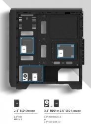 Ez a ház maximális helyet kínál HDD és SSD meghajtók számára, támogatva akár 156 mm magas CPU hűtőket és 330 mm hosszú grafikus kártyákat. Az első és hátsó hűtés akár 8 ventilátor elhelyezésével biztosít kiváló légáramlást, maximalizálva ezzel a teljesítményt és az alkatrészek védelmét.