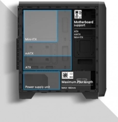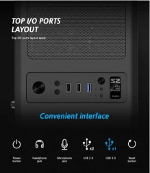 Praktikus elemek sem hiányoznak, mint a felső panel csatlakozóival, mágneses por szűrők és alsó por szűrő. A tápegység számára kialakított speciális rész lehetővé teszi a hatékony helykezelést és hűtést.