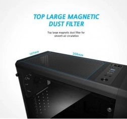 A háznak alsó por szűrője van a por elleni védelemhez, és nagy felső mágneses szűrője a tökéletes légáramlás érdekében.