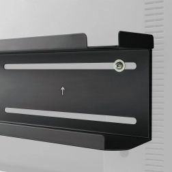 2 az 1-ben polc kétféle szerelési lehetőséggel: falra vagy a televízió hátoldalára. A polc két szintből áll – a felső polcon csúszásgátló betét található, amely még jobban védi a rajta tárolt tárgyakat a leeséstől. Az univerzális dizájn könnyen illeszkedik bármilyen környezethez. Ezzel a tárolópolccal könnyebben rendszerezhető a TV körüli tér. A nagy felület elegendő helyet biztosít többek között a routernek, a TV távirányítónak, egy elosztónak és más tárgyaknak. A polc maximális terhelhetősége 2 kg.