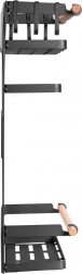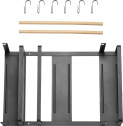 A széles papírtörlő-tartó a legtöbb, piacon kapható tekercshez illeszkedik. A hat levehető horog például kávésbögrék, csészék vagy konyhai kiegészítők felakasztására használható. Az univerzális és stílusos kialakításnak köszönhetően a polc könnyedén illeszkedik bármely konyha enteriőrjébe. A fa elem nemcsak dekoratív, hanem megakadályozza az elhelyezett tárgyak kiesését is. A három erős mágnes lehetővé teszi a polc gyors és egyszerű felszerelését fém felületre, például hűtőszekrényre vagy mosógépre, fúrás és szerszámok használata nélkül. A maximális teherbírás 12 kg.