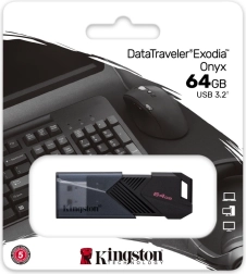 A Kingston DataTraveler Exodia Onyx USB flash meghajtó kifinomult és funkcionális kialakítást kínál matt fekete felülettel és mozgatható kupakkal, amely védi az USB csatlakozót, amikor nem használják az eszközt. Ez a modell ideális minden napos használatra a könnyű és kompakt méretének köszönhetően.