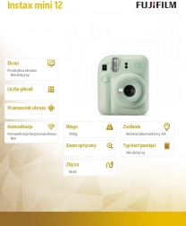 Az INSTAX Mini 12 az analóg fotózás örömét hozza el játékos, modern dizájnban. A használata pofonegyszerű: fordítsd el, célozz és fotózz – és pillanatokon belül a kezedben tarthatod a hitelkártya méretű azonnali fotót. A automatikus vaku és az okos expozíció segítségével szépen megvilágított képeket kapsz beltérben és kültéren egyaránt.