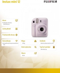 A FUJIFILM Instax Mini 12 remek választás mindenkinek, aki azonnal kézben szeretné tartani emlékeit. Egyszerű kezelése és megbízható azonnali nyomtatása miatt kezdőknek és kreatív rajongóknak egyaránt ideális. A stílusos pasztell lila kivitel kiemeli egyéni stílusát.