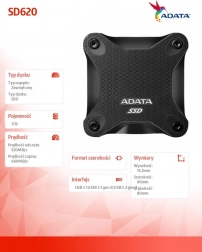 Az ADATA SD620 egy külső SSD meghajtó, amely ötvözi a sebességet, az ütésállóságot és a kompatibilitást. Akár 520 MB/s adatátviteli sebességének köszönhetően a data biztonsági mentése villámgyors, ütésálló dizájnjának és gumírozott bevonatának köszönhetően maximális biztonságot nyújt még 1,22 méter magasságból történő eséseknél is. Kompatibilis az Android, Mac OS és Windows rendszerekkel, hot-swapping funkcióval támogatja az egyszerű csatlakozást minden eszközhöz további illesztőprogramok nélkül. Az univerzális kompatibilitás és a sebesség mellett az ADATA SD620 eleganciát kínál a három színváltozat közül választva: fekete, kék és piros.