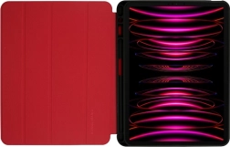 A négyrészes mágneses fedél több pozíciós állványként működik – ideális íráshoz, videónézéshez és videóhívásokhoz. A mágnesek megbízható záródást, automatikus ébresztést/altatást és stabilitást biztosítanak használat közben. A hátlap Anti‑Shock technológiával és honeycomb mintával hatékonyan csillapítja az ütközéseket, és megkönnyíti a tok fel- és levételét.