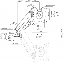 A tartó része egy gázrugó, amely megkönnyíti a monitor magasságának könnyű és zökkenőmentes beállítását. Kompatibilis a VESA 75x75 és 100x100 mm szabványokkal, így különféle márkák kijelzőinek, mint például Sony, LG, Samsung, Philips és mások egyszerűen felszerelhető.