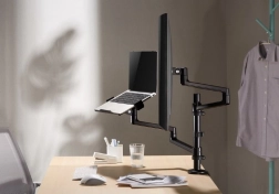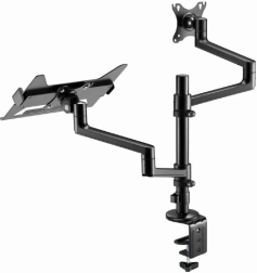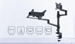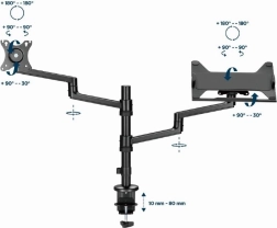 Az egyik kar 17–32″-es monitorhoz (VESA 75×75/100×100), a másik pedig 17,3″-ig laptopnak szolgáló polccal. Helyet takarít meg, és tökéletesen összehangolt munkakörnyezetet ér el.