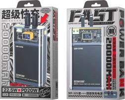 A stílusos és strapabíró WEKOME Vanguard Series powerbank 20000 mAh kapacitással szupergyors töltést kínál PD 20 W és QC 22,5 W formában, két beépített USB‑C és Lightning kábellel, valamint LED kijelzővel a hátralévő energia áttekintéséhez. A fejlett védelmeknek köszönhetően biztonságosan tölthet egyszerre több eszközt is, kompakt méretei pedig megkönnyítik a hordozást.