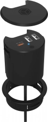- Helytakarékos kialakítás: a töltőelosztót kifejezetten asztali beépítésre tervezték. Rendkívül lapos és kompakt, így diszkréten integrálható az asztalfelületbe, értékes helyet takarítva meg