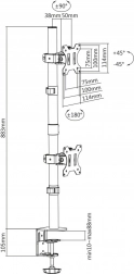 Univerzális asztali tartó lehetővé teszi két monitor függőleges egymásra szerelését, alkalmas képernyőkhöz 32 hüvelykig és max. 8 kg súlyig.