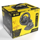A kormány tartós anyagokból készül, amelyek garantálják a valósághű és precíz játékérzést. Az ergonomikus gombelrendezés kényelmes vezérlést biztosít, míg a stabil rögzítőrendszer szilárdan tartja a kormányt, zavartalan versenyt biztosítva. A hozzáadott gáz- és fékpedálok valódi érzést nyújtanak, mintha egy versenyautó kabinjában lenne.