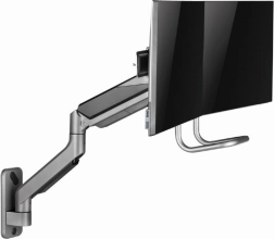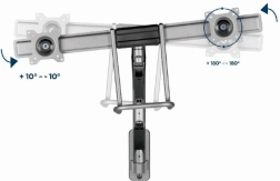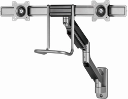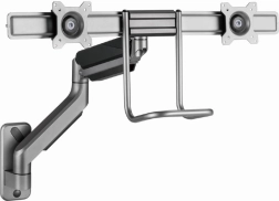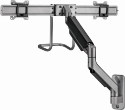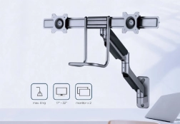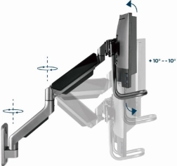 Ez a fali tartó lehetőséget ad egyszerű és ergonomikus pozicionálásra a terhelés csökkentése érdekében. Két monitoros tartó rugalmasságot kínál a karok forgatásához, kinyújtásához és lehajtásához, hogy megfeleljen az Ön igényeinek. A kijelzők forgathatók vízszintes és függőleges pozíció között, amely megkönnyíti az olvasást és javítja a munka kényelmét.