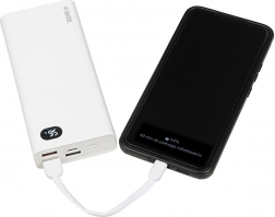 Élvezd a konnektortól való szabadságot. Ez a kompakt és tartós, 20 000 mAh kapacitású powerbank megbízhatóan feltölti a telefonodat, táblagépedet és fülhallgatódat is. A Power Delivery (PD) és Quick Charge (QC) gyorstöltés támogatásának köszönhetően az univerzális USB‑C és USB‑A portokon keresztül igazán gyorsan pótolhatod az energiát. Az áttekinthető LCD kijelző pontosan mutatja a hátralévő kapacitást, így mindig tudod, mikor kell feltölteni.