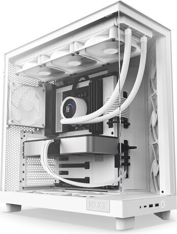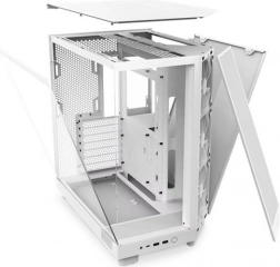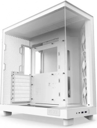 Az NZXT H6 Flow a modern dizájnt teljesítményközpontú megoldásokkal ötvözi. A panorámás üvegpanelek seamless éllel emelik ki az alkatrészeket, míg a kompakt, kétkamrás elrendezés javítja a hőmérsékleteket és rendezetten tartja a belsőt. A perforált felső és oldalsó panelek magas légáramlásra optimalizáltak, és a por szűrésében is segítenek.