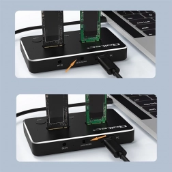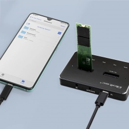 Ez a dokkoló állomás támogatja a SATA és NVMe interfészű M.2 lemezeket, és akár 10 Gb/s adatátviteli sebességet biztosít. Továbbá alkalmas a következőre: