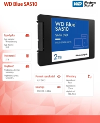 A WD Blue SA510 modern SATA SSD, amelyet alkotóknak, profiknak és igényes felhasználóknak terveztek, akik fel szeretnék gyorsítani a rendszerindítást, a projektek feldolgozását és a mindennapi produktivitást. Az akár 560 MB/s olvasási sebességnek és az alacsony késleltetésnek köszönhetően jelentősen felgyorsítja az alkalmazások betöltését és a nagy fájlokkal végzett munkát. Az alacsony fogyasztás meghosszabbítja a laptop üzemidejét két töltés között, a mozgó alkatrészek nélküli működés pedig megszünteti a vibrációt és csökkenti az adatvesztés kockázatát leesés esetén.
