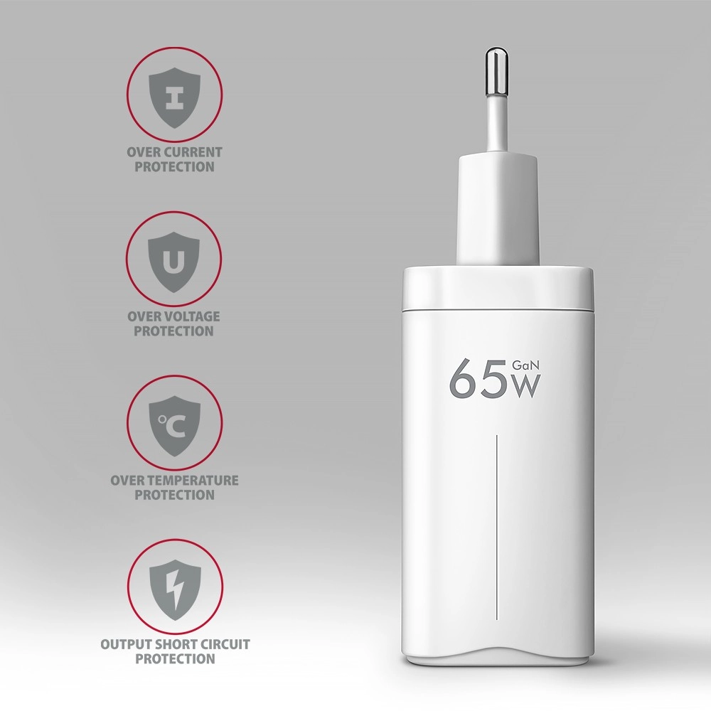 A töltőadapter kimeneti oldalán fejlett védelmi rendszer óvja a töltött eszközöket a károsodástól. A töltő funkciói felismerik a csatlakoztatott eszközt, és kiválasztják az optimális töltési sebességet és profilt.