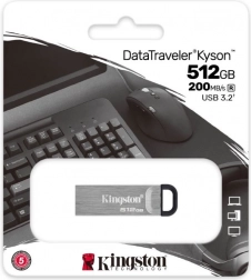 Stílusos és gyors Kingston DataTraveler Kyson USB flash meghajtó 512 GB kapacitással és USB 3.2 Gen 1 csatolóval a fürge adatátvitelért, akár 200 MB/s olvasási és 60 MB/s írási sebességgel. A tartós, kupak nélküli fém kivitel csökkenti az elvesztés kockázatát, a praktikus fül megkönnyíti a hordozást, és természetesen KINGSTON megbízhatóság jár hozzá 5 év garanciával.
