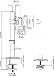 Az univerzális monitor tartó ideális megoldás különböző márkák LCD monitorainak felszereléséhez, legfeljebb 9 kg súllyal és 17"-től 32" átmérőig. Támogatja a VESA 75x75 és 100x100 mm-es szabványokat az egyszerű telepítéshez. Orientációs rugalmasság mind függőlegesen, mind vízszintesen lehetővé teszi a nézési igényekhez való alkalmazkodást. Az integrált kábelvezetők segítenek a munkaterület tisztán és rendezett módon tartásában.