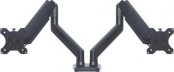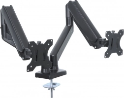 Élvezze a maximális kényelmet és rugalmasságot a munkavégzés során a dupla monitor tartóval, amely 13-tól 32 hüvelyk átlójú monitorok számára készült. Ez a tartó lehetőséget biztosít a vertikális dőlésszögre -45° és +90°, a horizontális elforgatásra 360°-os és PIVOT funkcióval az képernyő elforgatására. Szilárd szerkezete és integrált kábelrejtő rendszere ideális megoldást nyújt a munkaterület rendezett kialakításához.