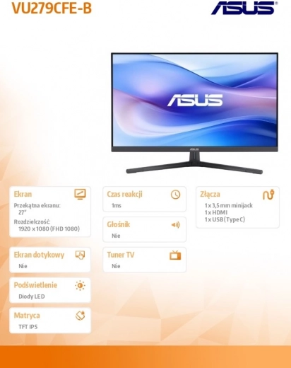 27 hüvelykes VU279CFE-B IPS 100Hz USB-C monitor
