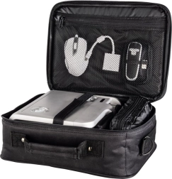 Az átgondolt belső csúsztatható és kivehető elválasztóval könnyen a projektorhoz és a tartozékokhoz igazítható. A külön dokumentumtartó zseb, a belső hálós zseb rejtett cipzárral és az első külső zseb áttekinthető tárolást biztosít minden szükségesnek – a kábelektől a távirányítóig.