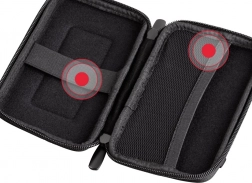 Ez a masszív tok speciális gumipánttal van ellátva, amely szilárdan a helyén tartja a lemezt. A meghajtó mellett elfér benne egyéb apró tartozék is, például USB pendrive, adatkábel vagy memóriakártyák. A rugalmas hálós zsebnek köszönhetően minden jól rendezett és könnyen hozzáférhető. A nagyobb kényelem érdekében a tok kétirányú cipzárral záródik.