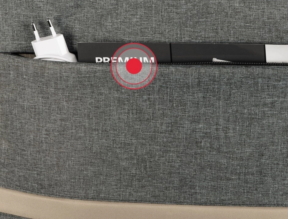 A tok elülső zsebbel is rendelkezik, amely személyes tárgyak és tartozékok számára készült. A párnázott belső biztonságban tart mindent, a fő rekesz pedig két tartós cipzárral záródik