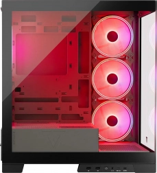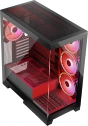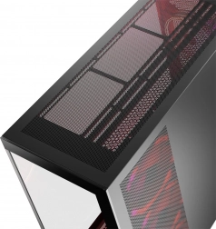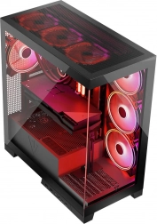Az elülső üveglap és az oldallemez a lehető legjobb módon mutatja meg a beépített komponenseket. Beállíthatod az alkatrészek megvilágítását kedvenc színedre, vagy választhatsz vibráló, szivárványszínű effekteket. Ez a ház azoknak szól, akik szeretnek betekintést engedni a gépük belsejébe.
