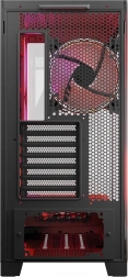 Ugyanekkora radiátor elhelyezhető az alaplap-szerelőfalnál a gyárilag szerelt ventilátorok helyén. A hátulsó részbe 140 mm-es radiátor szerelhető. A megoldások célja, hogy bármely játékhoz valódi gamer gépet építhess – mindezt látványos, üvegezett kivitelben.