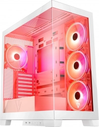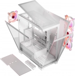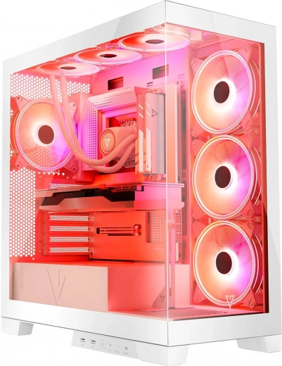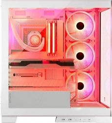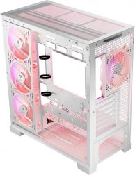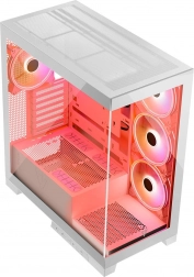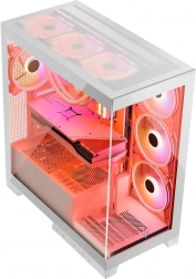 Az elülső üvegpanel és az oldallap a lehető legjobb módon mutatja meg a beépített komponenseket. Beállíthatod az alkatrészek megvilágítását a neked tetsző színre, vagy ragyogó szivárványszínekre is. Ez a ház azoknak szól, akik szeretnek büszkélkedni a számítógépük belsejével.