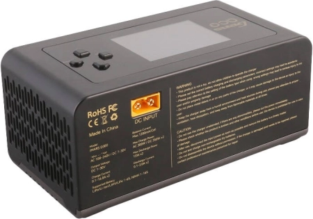 Nagy teljesítményű, kétcsatornás töltő modellezőknek, AC 300 W és DC 2×350 W teljesítménnyel. Támogatja a LiPo/LiHV/LiFe 1–6 S és NiMH 1–16 S akkukat, kínál automatikus G‑Tech felismerést, 2,4" IPS kijelzőt, cellakiegyenlítést és fejlett biztonsági funkciókat.