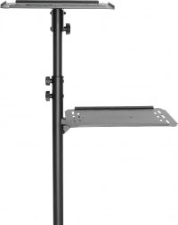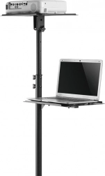 Az állvány két polccal van felszerelve, amelyeken egyszerre helyezhet el projektort és laptopot, ami ideális prezentációkhoz.