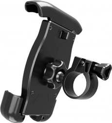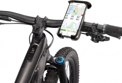 A szilikon betéteknek köszönhetően a telefon védett a rázkódásoktól, és a mechanikus zár megakadályozza a telefon lelazulását egyenetlen terepen való vezetés közben.