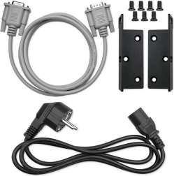 SNMP bővítés, RS-232 port kábellel és szerelési tartozékok a gyors beüzemeléshez, távoli menedzsmenthez és a biztonságos rack rögzítéshez.