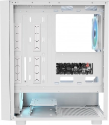 Az edzett üveg oldallap praktikus bepattintható rögzítéssel van ellátva. Nem kell minden alkalommal csavarokat kicsavarni, amikor alkatrészt cserél vagy ki szeretné tisztítani a belsőt. Az eltávolítható üveg alatt a szerkezeti elem fém része szellőző kialakítású, ami még alacsonyabb üzemi hőmérsékleteket biztosít a komponenseknek. A bemutatott megoldásokat a ház funkcionalitásának maximalizálására terveztük.