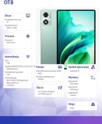 Az Oukitel OT8 tablet ideális választás azoknak, akik erős készüléket keresnek szemvédelem mellett. A lenyűgöző, 1920 x 1200 pixeles felbontású kijelzővel élvezheti a filmeket és videókat a legjobb minőségben. Az 515 grammos súly és a vékony profil miatt az OT8 könnyen hordozható, és alkalmas mindennapi használatra.
