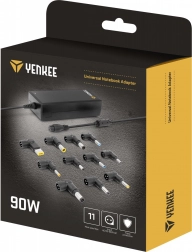 A tápegység adapter 11 különböző csatlakozóval érkezik, amely széles kompatibilitást biztosít számos notebook modellhez.