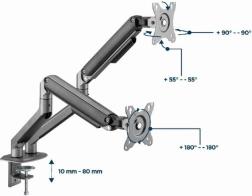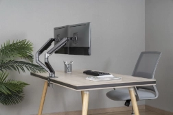 Tegyen rendet az asztalon, és élvezze a két kijelző ergonomikus beállítását. Ez a szürke, dupla karos tartó egyszerűvé teszi a magasság, a mélység és a dőlésszög beállítását, hogy a szem, a hát és a csukló egész nap kényelmes helyzetben maradjon. A gázrugók sima működésének köszönhetően pontosan kiegyensúlyozhatja a monitorok tömegét, és egyetlen érintéssel módosíthatja a pozíciót.