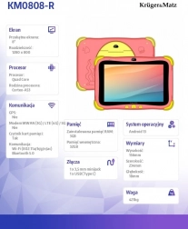 A Kruger&Matz FUN tablet biztonság és szórakozás kombinációját kínálja a kis felhasználóknak. A robusztus felépítés gumisarkokkal biztosítja az ütés- és leesésállóságot, ami kulcsfontosságú a gyerekeknek szánt eszközöknél. A négy magos processzornak és az Android 13 operációs rendszernek köszönhetően minden alkalmazás zökkenőmentesen fut, és lehetőséget ad gyermekjátékok és oktatási alkalmazások letöltésére.