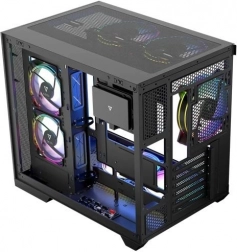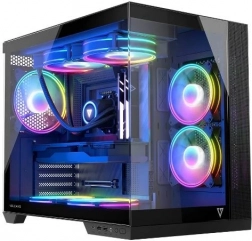Volcano Panorama Apex ARGB Midi úgy lett tervezve, hogy megfeleljen a modern számítógép építők igényeinek. Az edzett üvegre épített panel látványosan mutatja meg a komponenseidet, míg a kétkamrás kialakítás biztosítja az áramellátás különválasztását és a kábelek megfelelő rendezését.