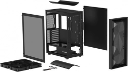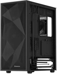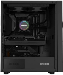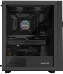 A GENESIS Diaxid 605F modern midi torony ház, a teljesítmény és a hűvös működés kedvelőinek. A három első beszívó és két hátsó kifújó ventilátor pozitív nyomást és kiváló légáramlást biztosít, míg a finom elülső mesh és a felső valamint alsó mágneses szűrők kordában tartják a port. A ház kompatibilis az akár 420 mm-es első AIO hűtőkkel, és elegendő helyet nyújt hosszú videokártyákhoz és magas toronyhűtőkhöz is.