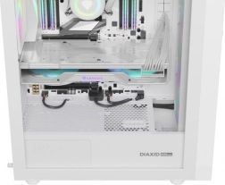 A GENESIS Diaxid 605 ARGB a magas hűtési teljesítményt elegáns dizájnnal ötvözi. Három elülső és egy hátsó 120 mm-es ARGB ventilátor pozitív nyomást hoz létre, a porszűrőkkel együtt pedig távol tartja a szennyeződéseket az alkatrészektől. A finom mesh előlapi panel (~0,8 mm) növeli a szűrés és a légáramlás hatékonyságát.