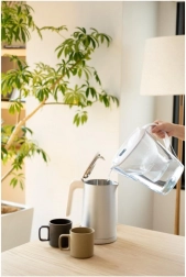 A teljes űrtartalom 3,5 l (kb. 2,4 l a kancsó teljes kapacitása és 1,4 l a szűrt víz egy töltéssel) fedezi az egész napos folyadékbevitelt, valamint italok és ételek elkészítését.