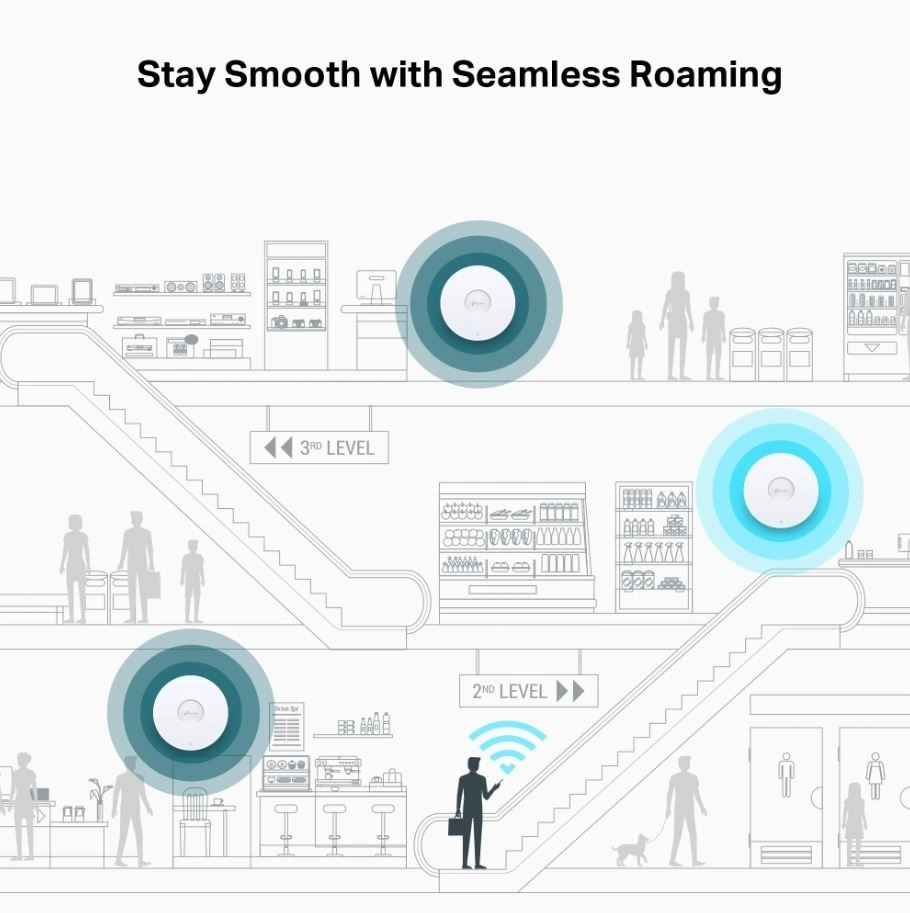 A készülék támogatja a központosított felügyeletet, a mesh hálózatot és a fejlett telepítési lehetőségeket, így egyszerűen bővíthető a lefedettség és egységesen kezelhető az egész infrastruktúra. Kiváló választás irodák, iskolák, hotelek és kiskereskedelem számára.