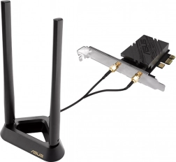 Az ASUS PCI-E kártya kulcsfontosságú elem a nagysebességű vezeték nélküli kapcsolat eléréséhez. A Wi‑Fi 7 2,4×‑es sebességnövekedésével javul a kapcsolati teljesítmény és a hálózati biztonság. Az új 6 GHz-es sáv és a 320 MHz bevezetésével csökken a túlterheltség és a jelzavar.